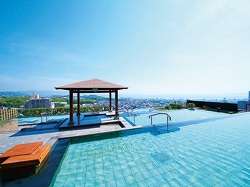 While Rakutenchi is actually an old-fashioned amusement park, its hot spring is a bit of a local secret with one of the best panoramas in the area. To get there, you have to take a steep, colourful cable car up the side of the mountain. The bath itself is quite simple, but because the park sits so high up, you get a clear view of the entire bay without the crowds.