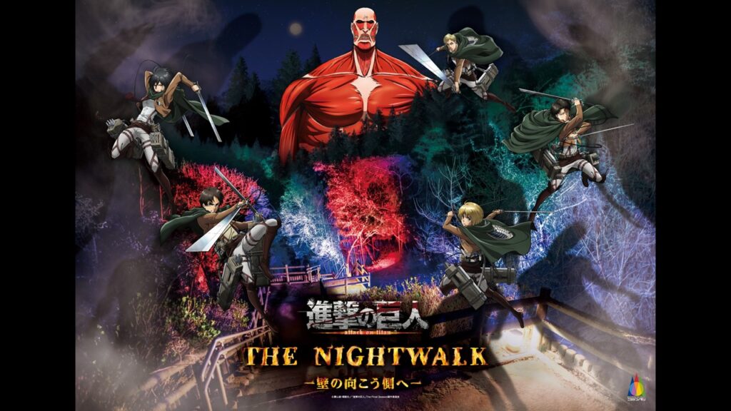 The Attack on Titan attraction is a limited-time collaboration running from March 14th 2026, to December 13th 2026. It’s a night walk experience that’s only open between 6:30 and 10pm, and takes you on a 1.2km long walk through an illuminated forest. There’s going to be lots of cool visuals and effects, and at the end, you even receive a small novelty souvenir.