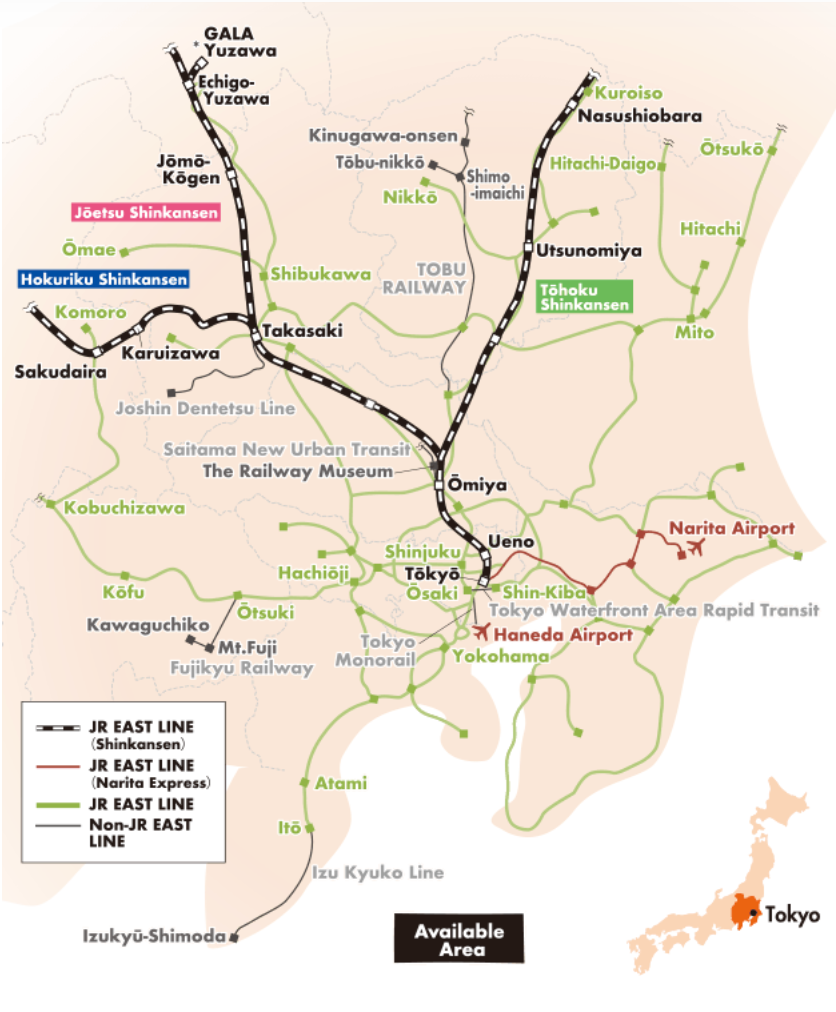 - All JR EAST Lines: This is the main network. Your pass is valid on all JR East trains in the designated area. This includes the fast Shinkansen (like to Karuizawa and GALA Yuzawa), comfortable Limited Express trains (like the Narita Express/N’EX, the Fuji Excursion, and the Odoriko to Izu), and all local and rapid trains.